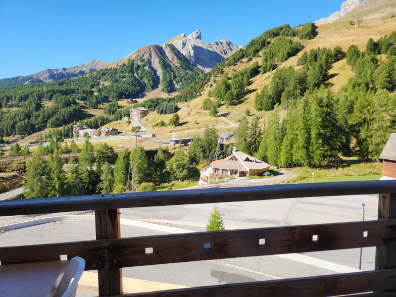L'appartement dispose d'un balcon exposé Sud avec une belle vue sur les montagnes. Vous pouvez y déjeuner à 3 personnes.